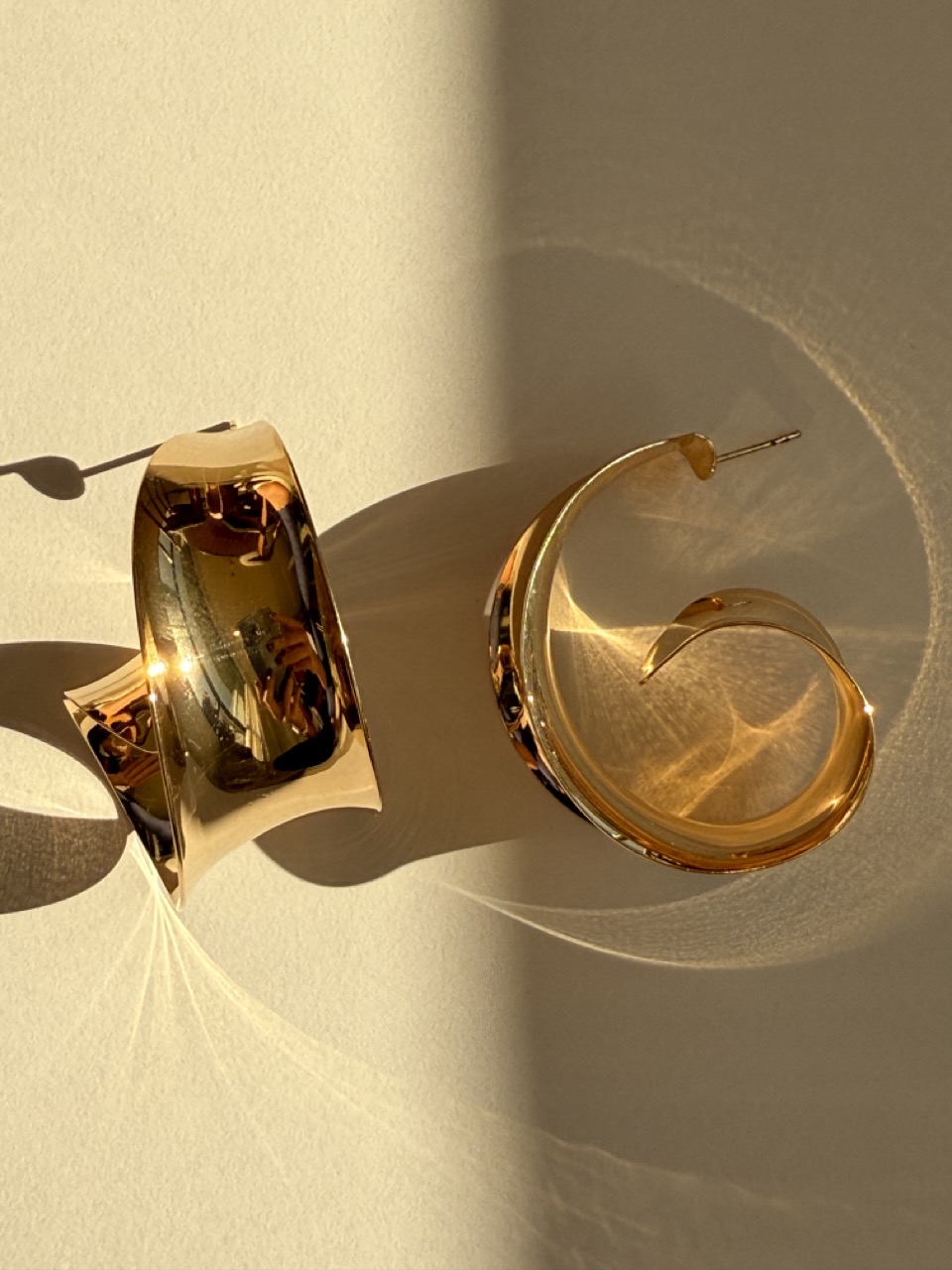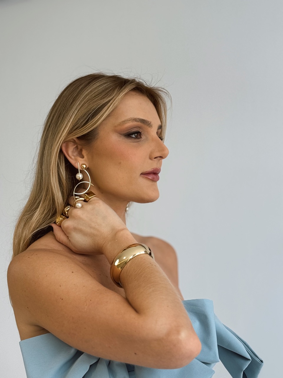 Brinco argola lisa max, com a parte de trás curva, trazendo um desing moderno. Brinco considerado super leve.