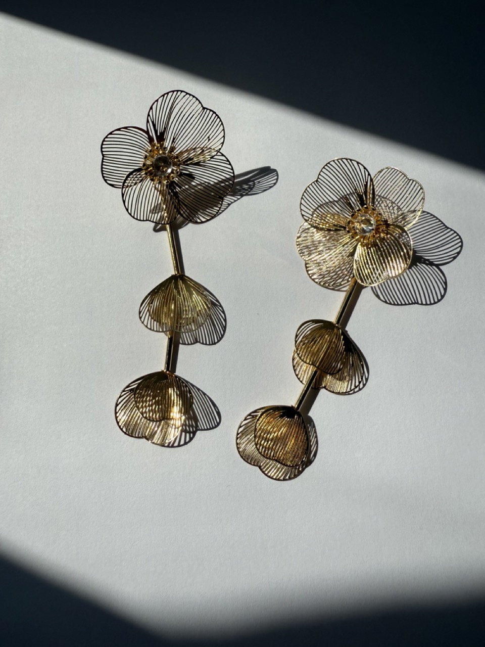 Brinco flor com pétalas em pêndulo, brinco todo vazado com tarracha de pétalas removível. Podendo utilizar somente a parte superior com outra tarracha avulsa.