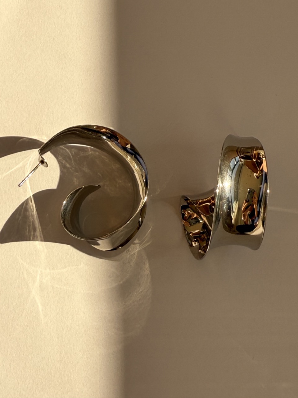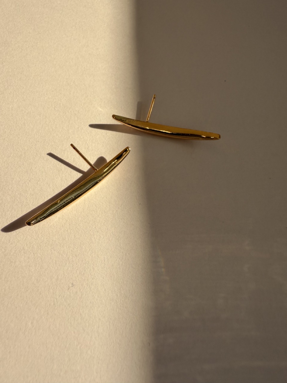 Brinco max liso orgânico, com as extremidades curvas, com design moderno, considerado um brinco leve.
