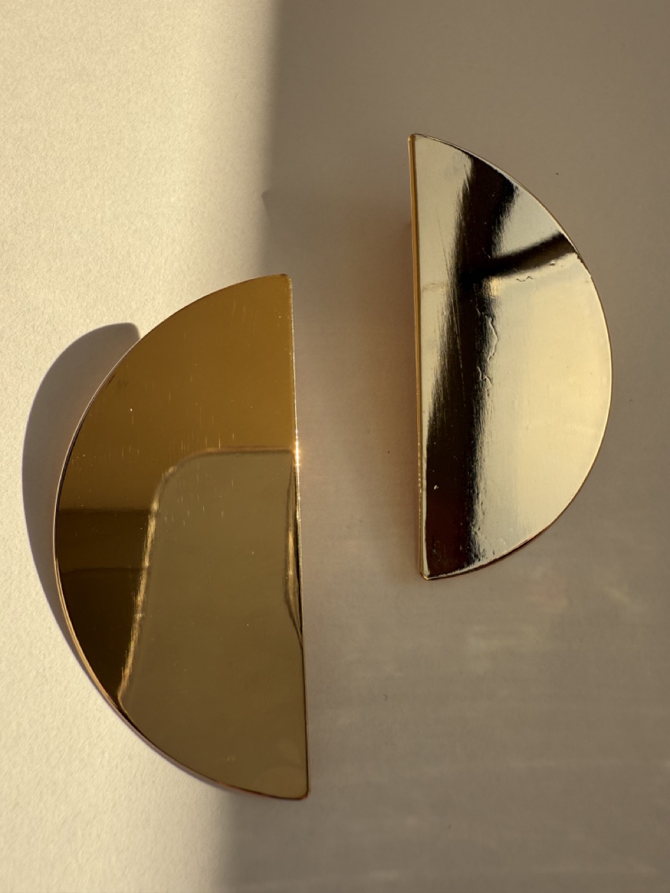 Brinco chapa de metal meia lua liso, brinco super leve e moderno.