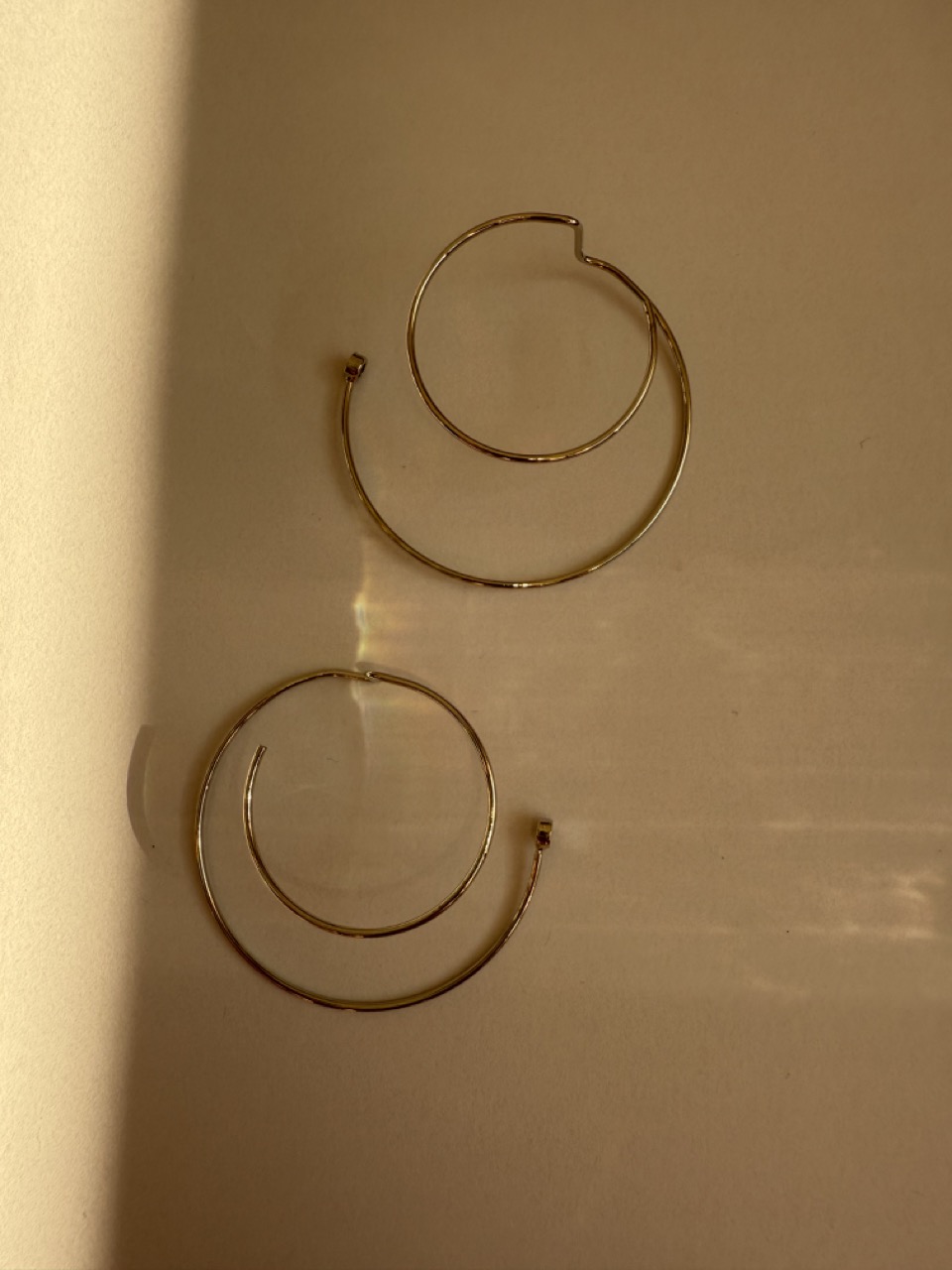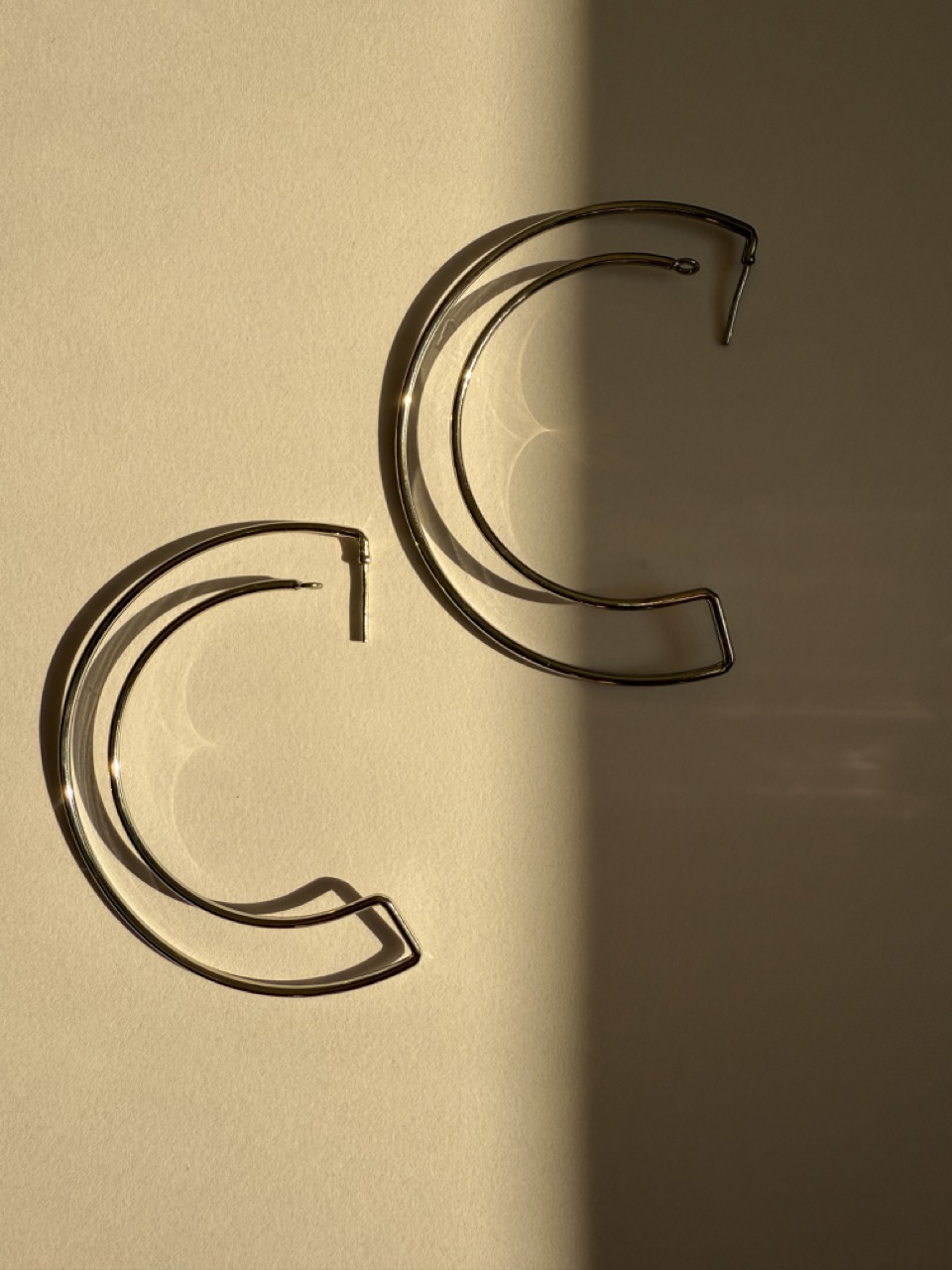 Brinco argola com design de fio liso em meio círculo grande, super leve.